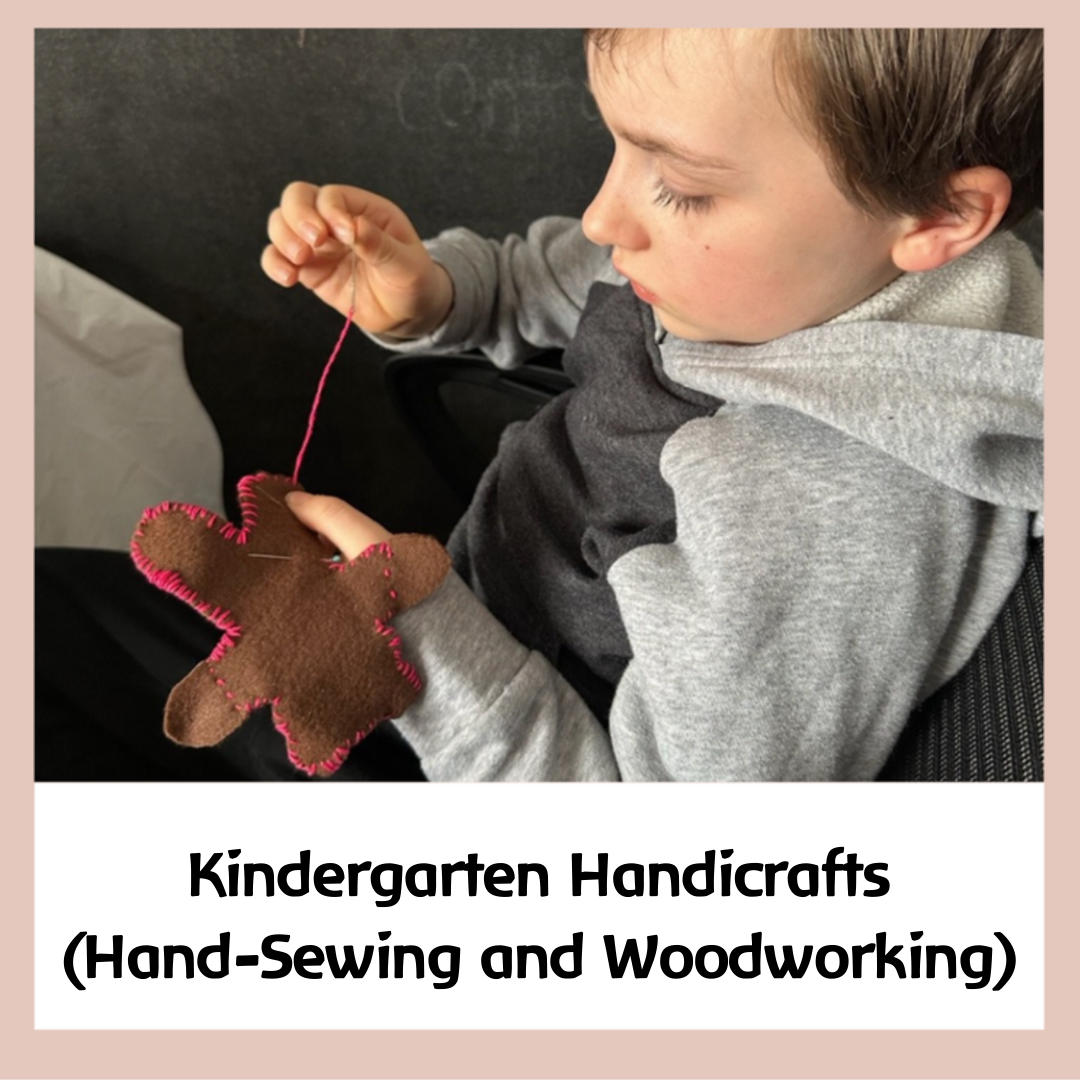 Kindergarten Creative Speech & Dramatics meets for 50 minutes during Semester 1, once per week for 18 weeks. Handicrafts class meets for 1 hour twice per week during Semester 2. This is a semester-long combined class of Hand Sewing and Woodworking for kindergarten students entering first grade the following fall, and for first-grade students.